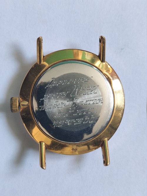 - Calibre: Raketa 2209 (1965), 9.75 ‴, H= 2.7 mm, 23 jewels, f=19800 A/h, sweep second. Petrodvorets watch factory logo. Unusual conventional winding gear on dial side