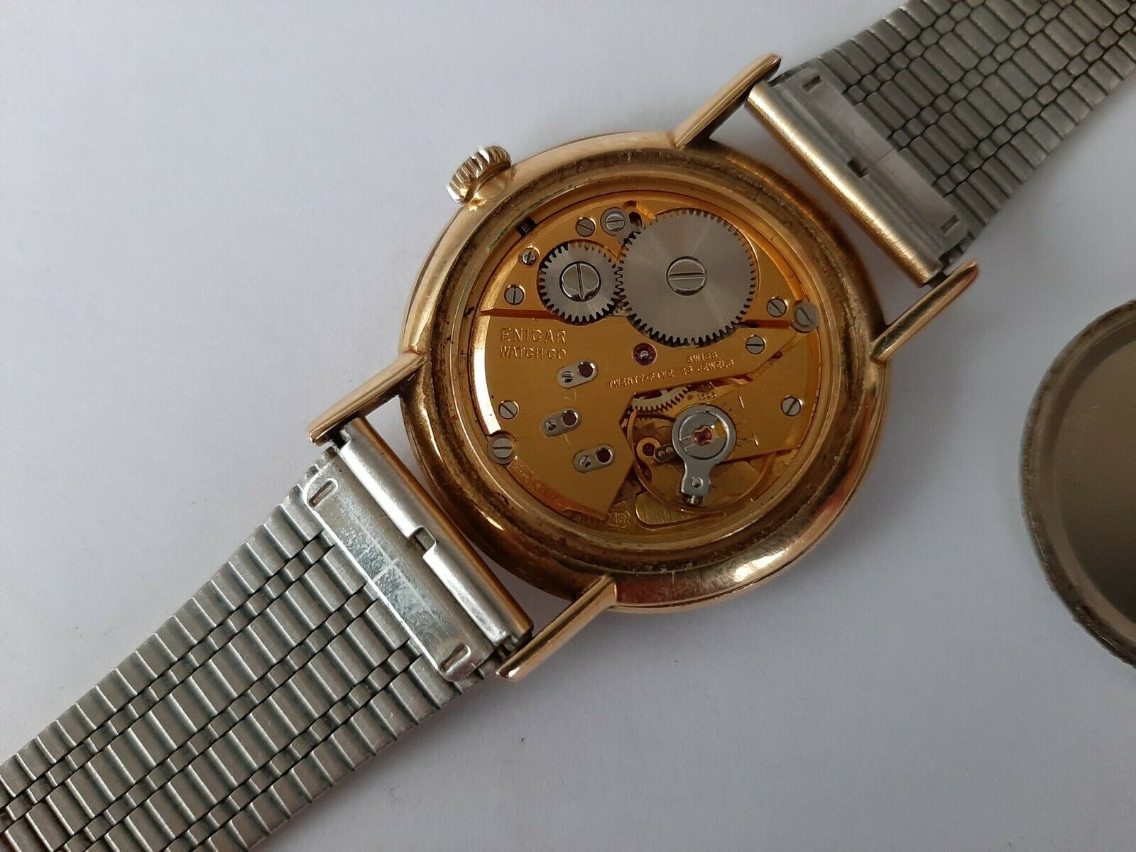 - Dial: original Silver dial with gold hour markers and matching hands. Dial signed Enicar, Swiss and with Enicar logo