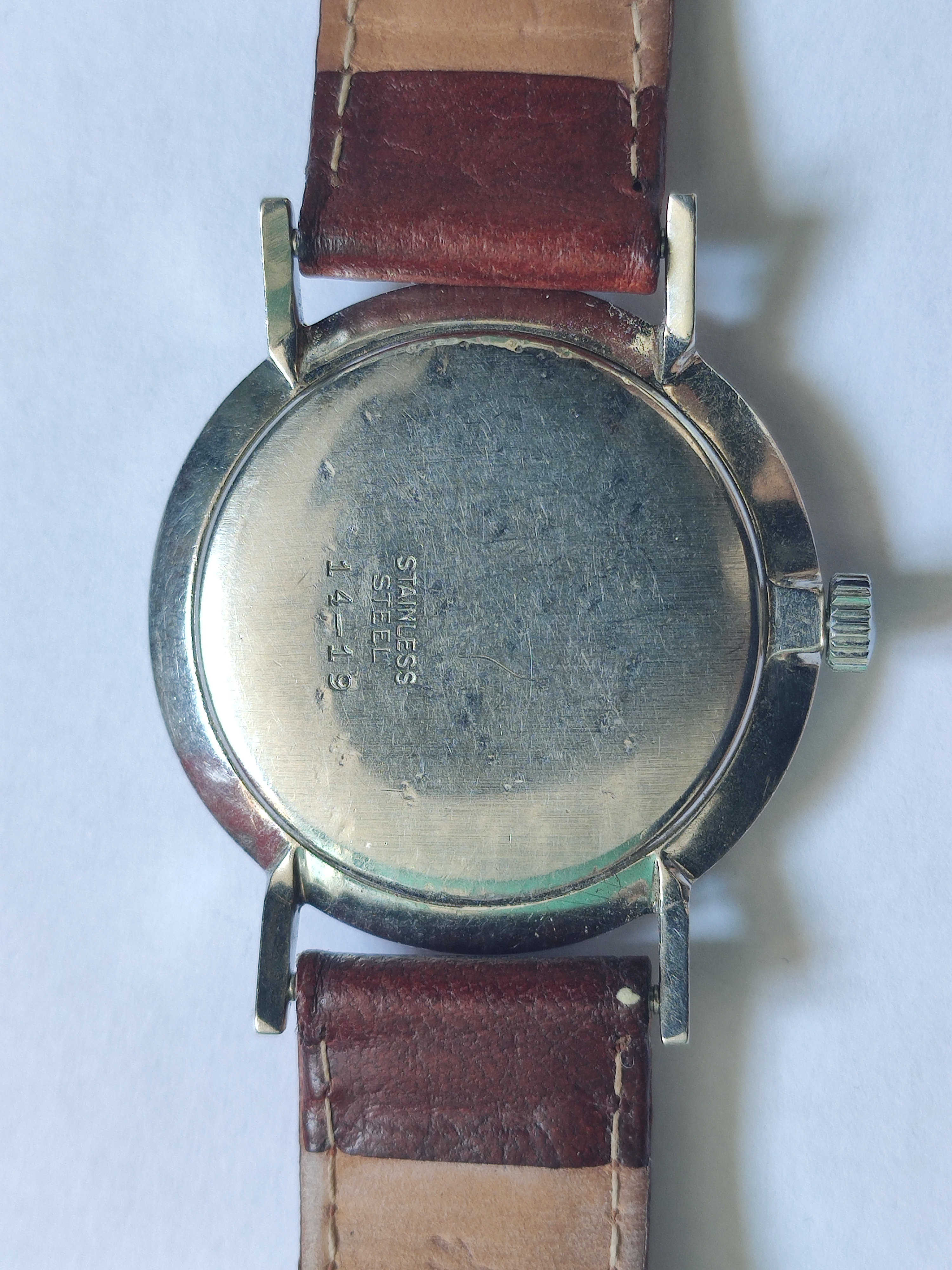 - Dial: original white dial with painted hour markers and chrome hands. Dial signed Angelus, Swiss.