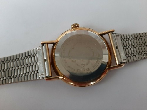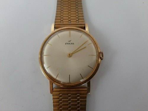 - Dial: original Silver dial with gold hour markers and matching hands. Dial signed Enicar, Swiss and with Enicar logo